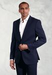 64% polyester 34% viscose, 2% elastane. Slim fit, peaked lapel, 1 button, twin rear vents Centre back length at size 40R = 76cm